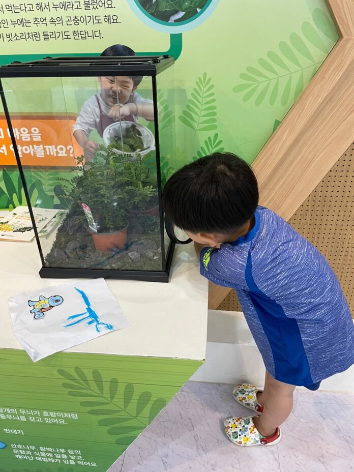 바로 이것을 위해 왔습니다. 요즘 장수풍뎅이에 관심이 많은 첫째! 이곳의 장점은 실제로 유충을 만져볼 수 있다는 거에요! 어찌나 좋아하던지.. 한번 구경하고 다시 와서 또 만져봤답니다.