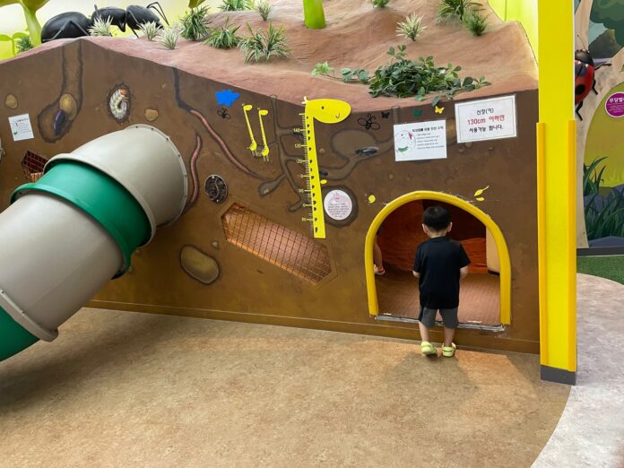땅 속에 사는 벌레를 보고, 올라가서 미끄럼틀도 타보고요.