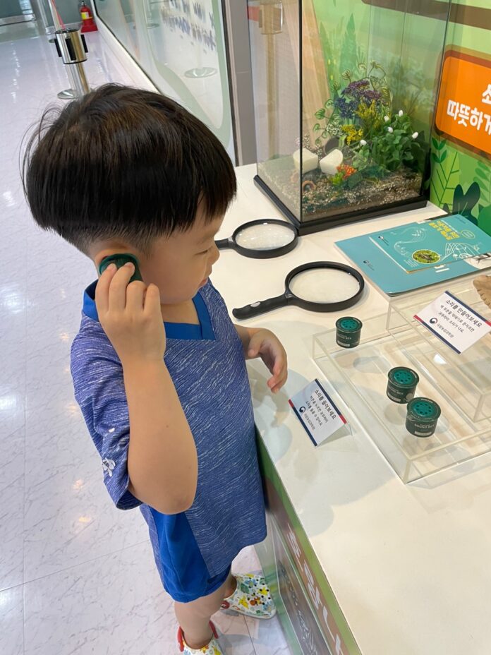 바로 이것을 위해 왔습니다. 요즘 장수풍뎅이에 관심이 많은 첫째! 이곳의 장점은 실제로 유충을 만져볼 수 있다는 거에요! 어찌나 좋아하던지.. 한번 구경하고 다시 와서 또 만져봤답니다.